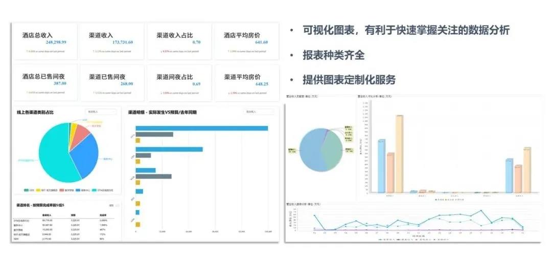 ▲西软云XMS系统:实现集团端与酒店端实时互联,便捷数据统计与抓取,且报表齐全。同时支持多重可视化图标,及时掌控数据分析!
